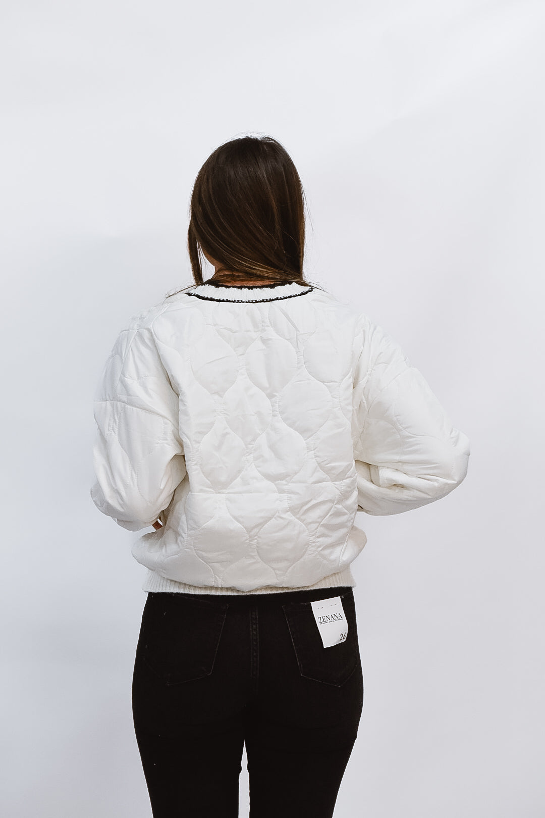 Soft knit body + quilted sleeves = the perfect mix of warmth and style! The black contrast trim gives it that timeless, expensive look while staying comfy enough for all-day wear. Pair with jeans, leggings, or a faux leather moment for a chic outfit in seconds.
