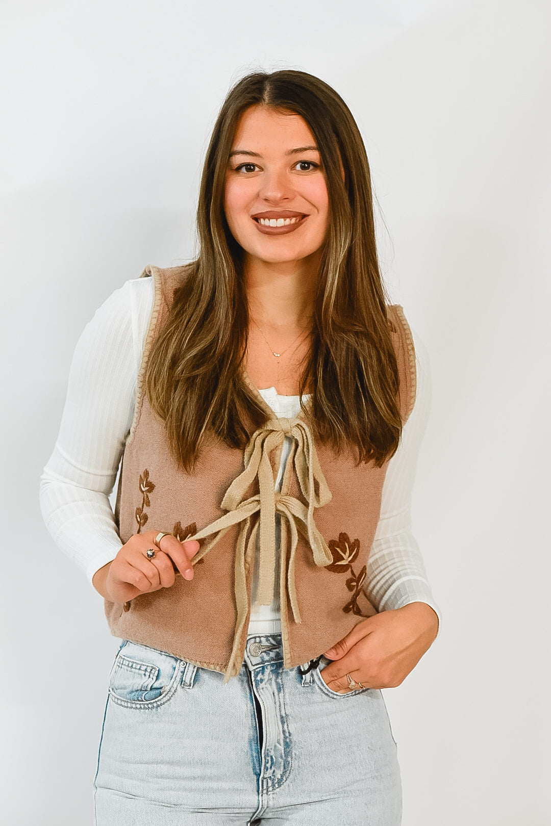 Say hello to your new favorite layering piece! The Last Kiss Tan Vest gives all the boho-western vibes with its soft faux suede fabric and embroidered flower details. The front tie closures add the perfect feminine touch while still keeping it trendy and unique.