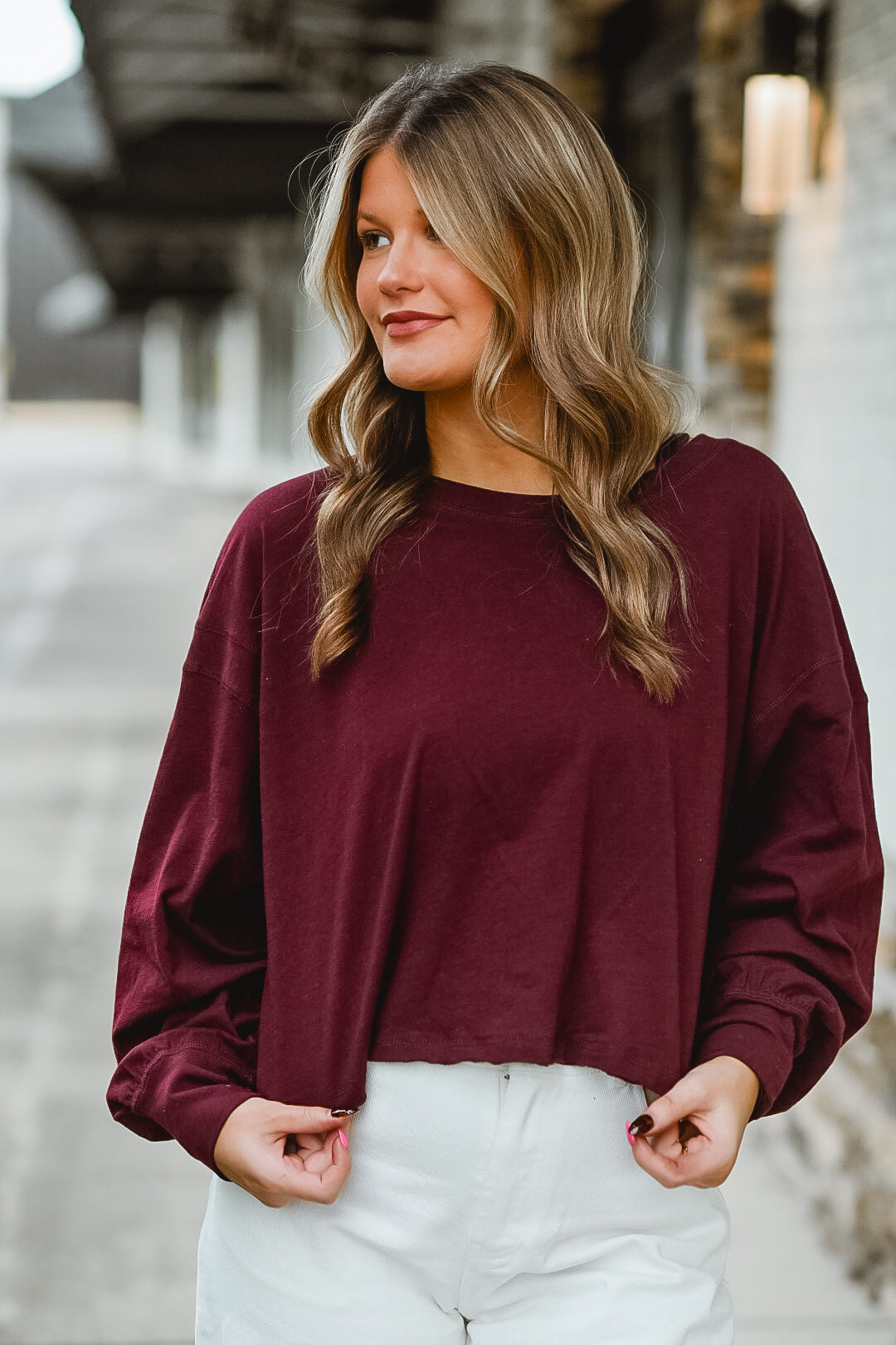 Add a touch of effortless charm to your everyday wardrobe with our Merlot Twist Lounge Top. Designed in a rich wine hue, this relaxed long sleeve looks classic from the front but brings unexpected style with its twisted open-back detail. The lightweight knit makes it perfect for layering or wearing solo, whether you’re lounging at home, grabbing coffee, or heading out for a casual night with friends. Versatile and chic, it’s the kind of piece that transitions seamlessly from day to night. I’m 5’7 wearing med.